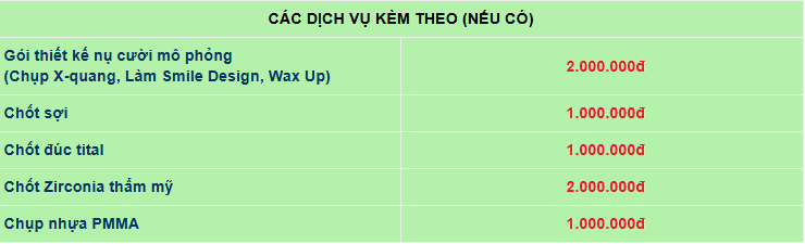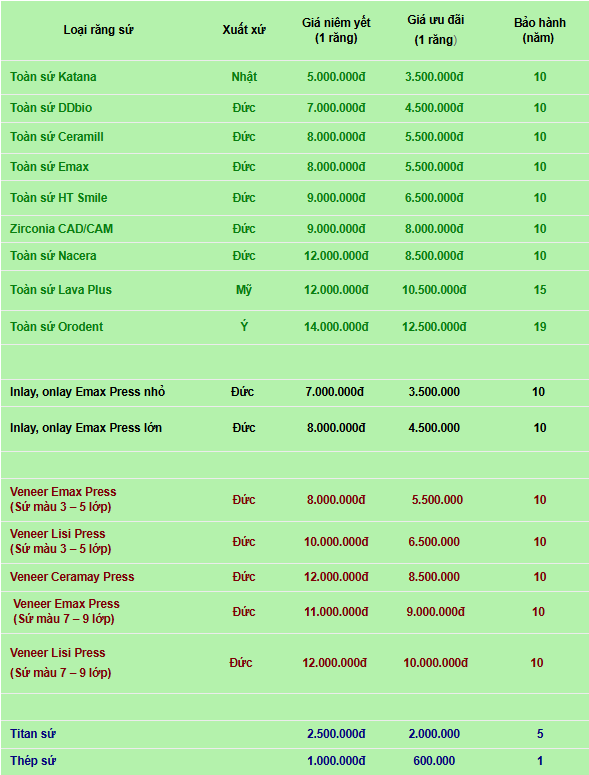 Bạn có thể tham khảo bảng giá mão sứ tại nha khoa Thùy Anh: