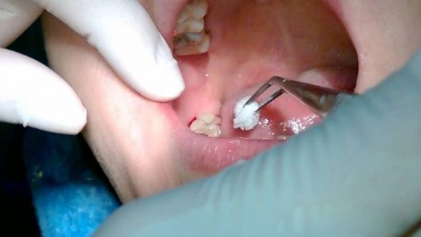 Sau nhổ răng bác sĩ sẽ đặt miếng gạc tại vị trí của răng vừa được nhổ, mục đích để thấm phần máu từ vết thương và giúp máu đông nhanh hơn. Việc của bạn là giữ nguyên vị trí của băng gạc bằng cách cắn chặt răng khoảng 60 phút. Điều này sẽ giúp tạo áp lục lên ổ răng để ngăn chặn tình trạng chảy máu ở các mao mạch nhỏ. Nếu sau thời gian này vẫn tiếp tục chảy máu thì bạn thay gạc và đặt lại vị trí vừa nhổ răng rồi cắn chặt lại cho tới khi ngừng chảy máu là được.
